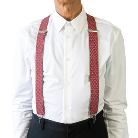 Featuring a joyful mix of red, green, and pink tones, these Festive Diamond print X-back suspenders with nickel clips offer festive style with everyday practicality.
