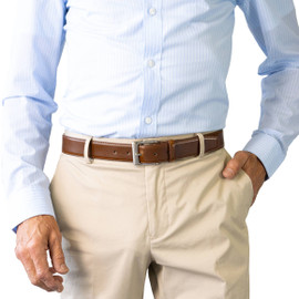 Proudly made in Australia by our team of skilled craftspeople, the Royce Deluxe belt is one of our bestselling styles in the classic range. Designed for formal occasions and business attire, it combines timeless style with quality materials. Royce Deluxe is crafted with our signature Heritage leather on top, backed with cow leather for added strength and flexibility, and finished with a sleek nickel buckle.