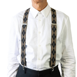 BRACES. X-Back with Nickel Clips. Argyle Print. Beige. 35mm width.