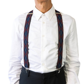 Bring a touch of heritage style to your wardrobe with our burgundy argyle braces. Featuring the timeless diagonal check pattern, these braces add interest without overwhelming your outfit. Finished with nickel clips and an X-back design for secure, all-day wear.
